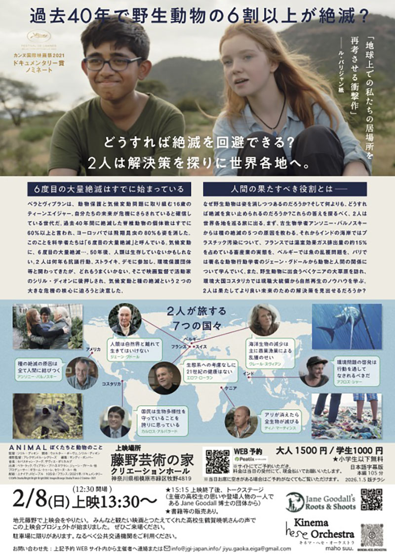 高校生企画! 2月8日(日)開催。映画『ANIMAL』上映会を地元藤野で開催したい Youth In Action! Film Screening hosted by Akiho Tsuruga at Fujino